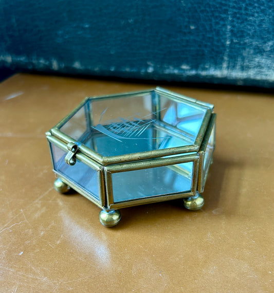 Glass Trinket Case Hinged Lid Etched Sailboat