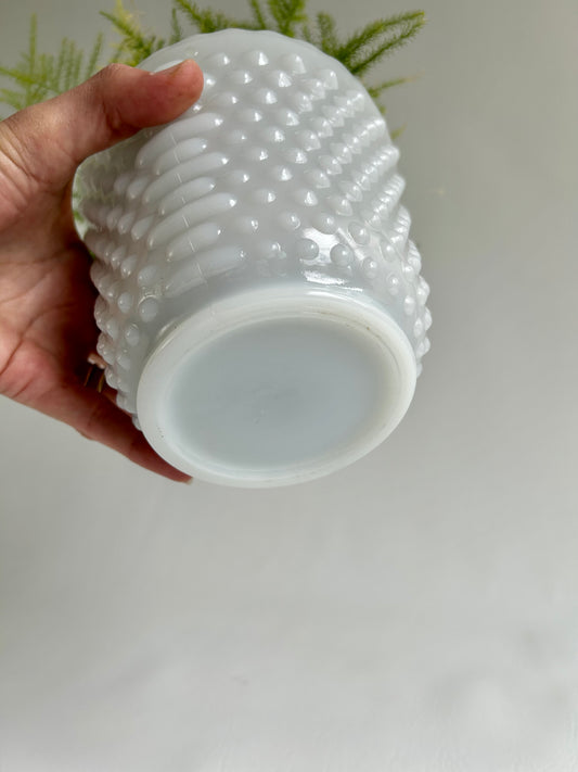 Vintage Milk Glass Hobnail Planter, Vase, White