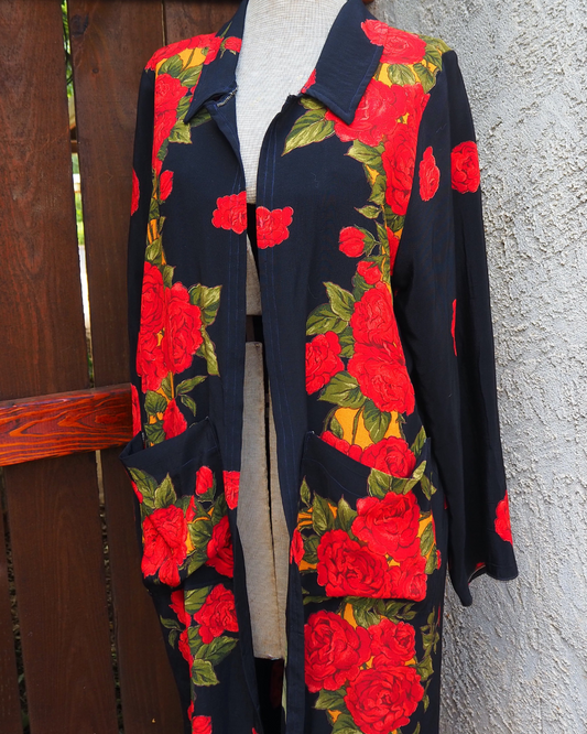 Black Rose Floral Vintage Fabric Duster